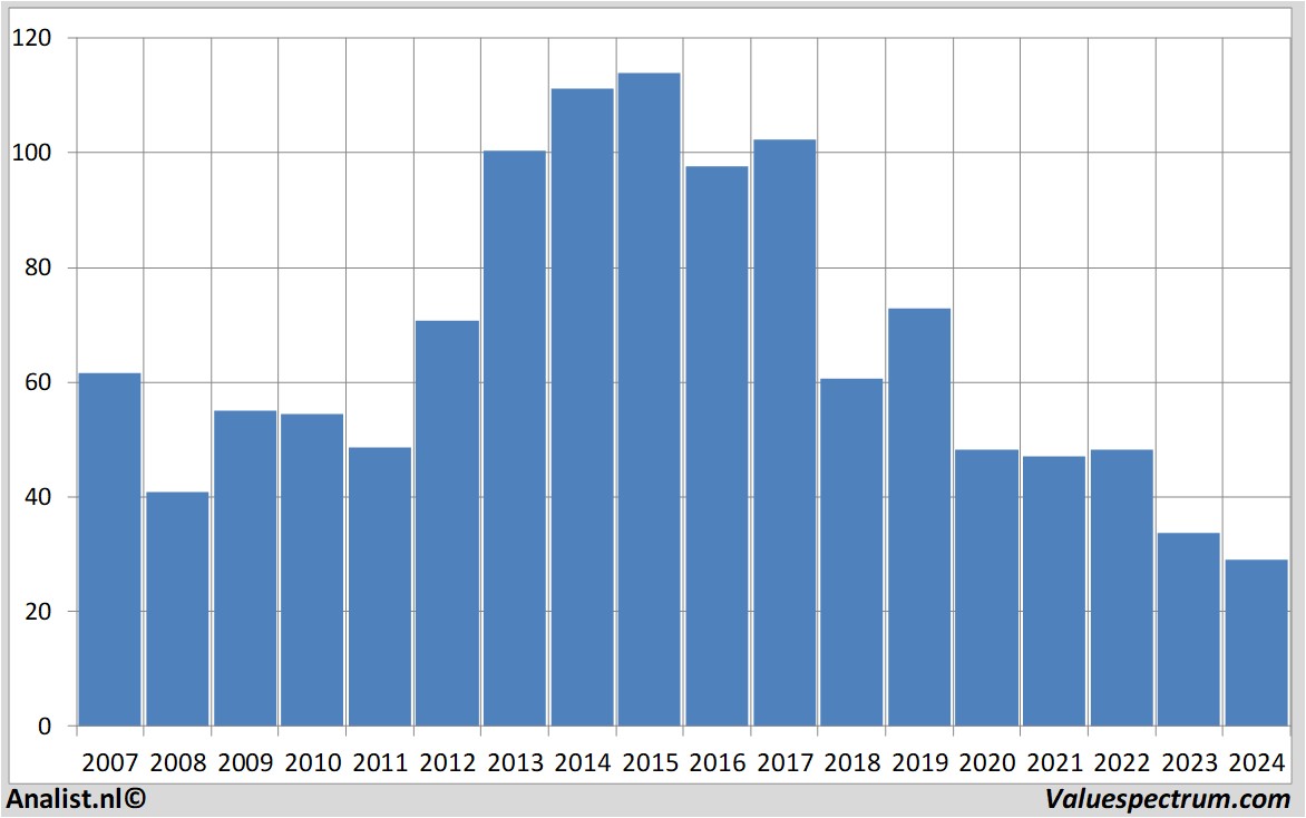 Es wird erwartet, dass der Schnitt der Dividenden 11 Cent betragen wird. Die Dividendenrendite macht daher 0.38 Prozent aus. Im Durchschnitt erzielte der Chemiesektor eine ziemlich hohe Dividendenrendite von 2.11 Prozent.