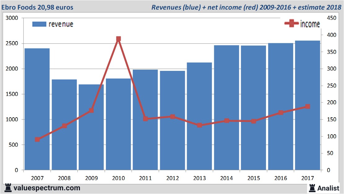 In den vergangen Jahren hat Ebro Foods viel an Wert gewonnen. Mit einem Kursanstieg von 66 Prozent gehörte die Aktie zu den besten Aktien in Spanien. Die durchschnittliche Aktie in Spanien ist seit Beginn des Jahres um ca. 0 Prozent niedriger. Grifols , Vidrala und Viscofan gehören zu den Gewinnern.