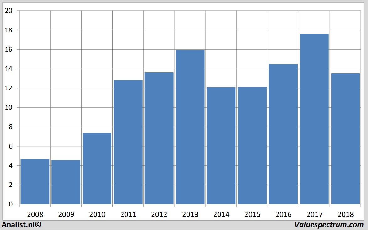 Die Analysten erwarten für 2018 einen Jahresüberschuss von Mio. Euro. Für dieses Jahr erwartet die Mehrheit der Analysten einen Gewinnvon 70 Cent je Aktie. Auf dieser Basis, liegt das Kurs-Gewinn-Verhältnis bei 19,34.