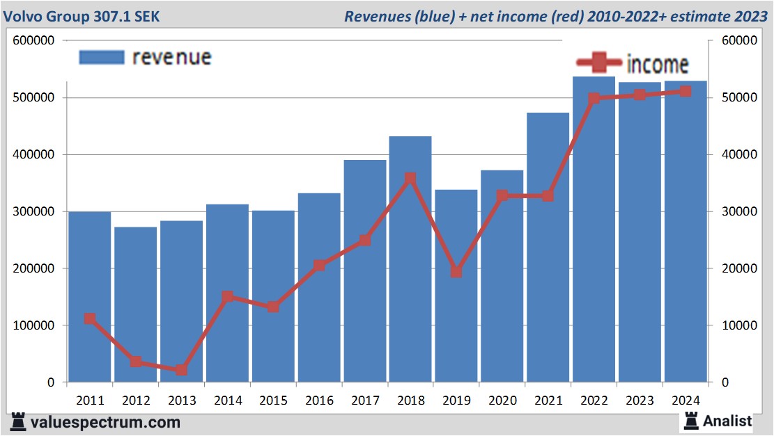 Morgen wird die schwedische Firma Volvo Group Group die Ergebnisse des letzten Quartals veröffentlichen. Für dieses Jahr beträgt der Konsensus des Umsatzes 529.71 Mrd. SEK. Das ist etwas mehr als der Ertrag im Jahr 2023 in Höhe von 526.82 Mrd. SEK.
