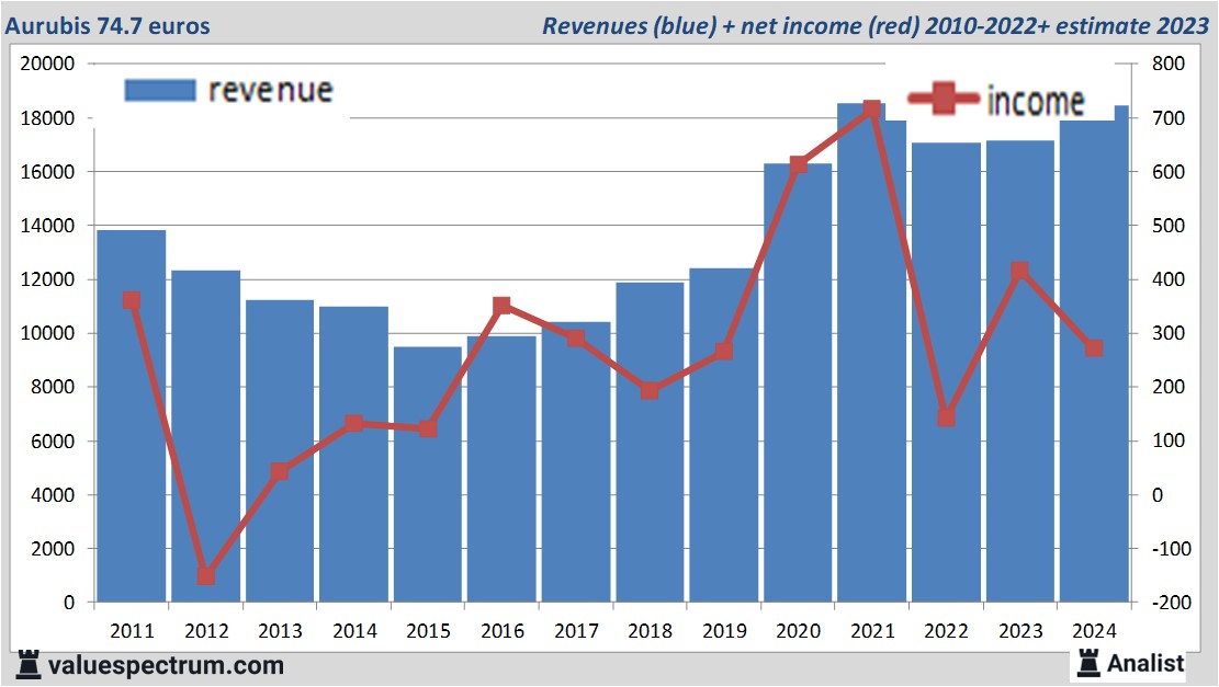 Aurubis wird morgen die Ergebnisse des letzten Quartals veröffentlichen. Für dieses Jahr wird von der Mehrheit der Analysten ein Gesamtumsatz von 18.43 Mrd. Euro erwartet. Das ist etwas mehr als der Ertrag im Jahr 2023 in Höhe von 17.14 Mrd. Euro.