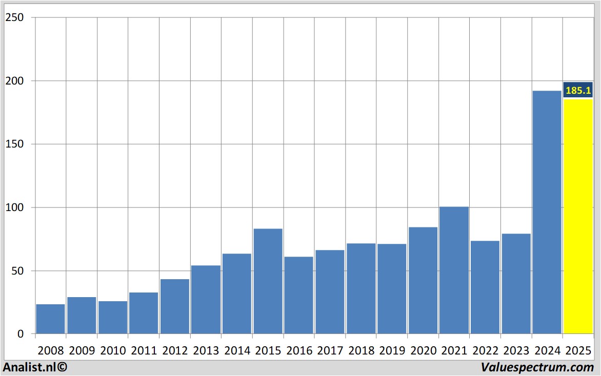 Die Analysten erwarten für 2024 einen Jahresüberschuss von 858 Mio. Euro. Für dieses Jahr erwartet die Mehrheit der Analysten einen Gewinn je Aktie von 4.49 Euro. Basierend darauf, beträgt das das Kurs-Gewinn-Verhältnis 41.22.