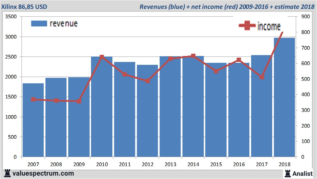 Xilinx's Marktkapitalisierung beträgt auf Basis der Anzahl der ausstehenden Aktien 21,54 Mrd. Dollar. In den letzten 12 Monaten war die Xilinx Aktie recht unbeständig. Im Vergleich zum letzten January ist der Aktienpreis sogar um 28 Prozent höher. In diesem Jahr lag der Aktienpreis zwischen 62 und 95 Dollar. Seit 2008 ist der Aktienkurs um fast 373 Prozent gestiegen.