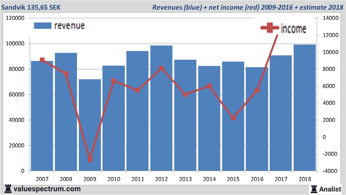 Am Montag wird das schwedische Unternehmen Sandvik die Quartalszahlen veröffentlichen. Für dieses Jahr wird von der Mehrheit der Analysten ein Gesamtumsatz von 99,3 Mrd. SEK erwartet. Das ist etwas mehr als der Ertrag im Jahr 2017 in Höhe von 90,83 Mrd. SEK.