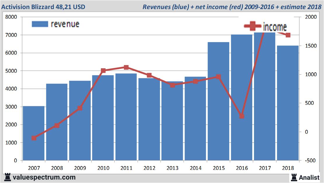 Historische Umsatzerlöse und Ergebnisse von Activision Blizzard plus Schätzungen 2018
