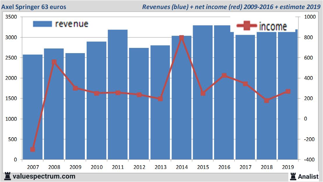Morgen wird die deutsche Firma Axel Springer die Ergebnisse des vergangenen Quartals veröffentlichen. Für dieses Jahr prognostiziert die Mehrheit der Analysten einen Gesamtumsatz 3,19 Mrd. Euro. Das ist etwas mehr als der Ertrag im Jahr 2018 in Höhe von 3,18 Mrd. Euro.