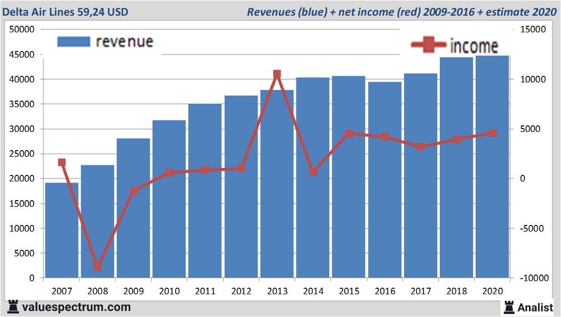 Delta Air Lines wird Morgen die Ergebnisse des letzten Quartals veröffentlichen. Für dieses Jahr beträgt der Konsensus des Umsatzes 46,92 Mrd. Dollar. Das ist etwas mehr als der Ertrag im Jahr 2018 in Höhe von 44,44 Mrd. Dollar.
