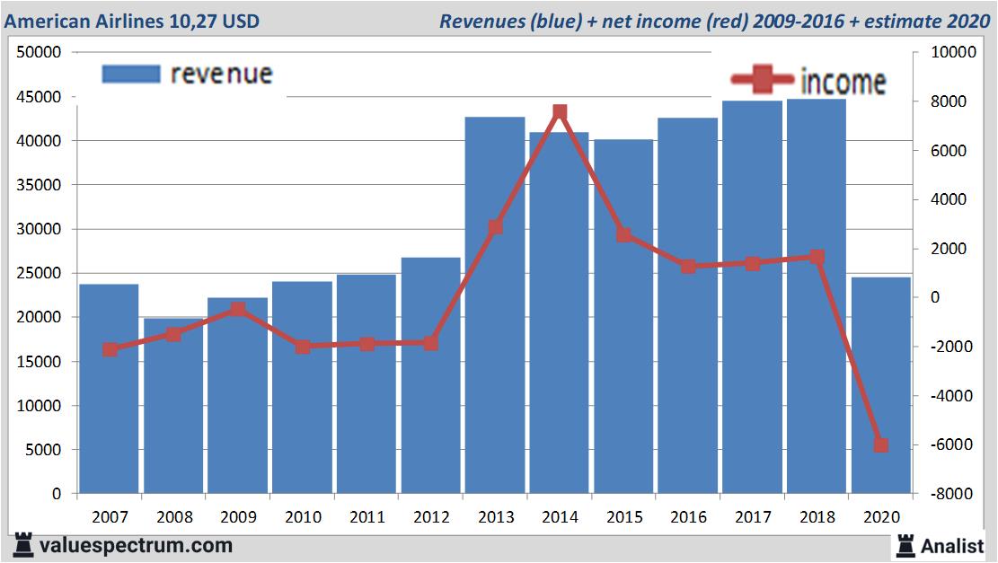 Morgen wird die amerikanische Firma American Airlines die Ergebnisse des vergangenen Quartals veröffentlichen. Für dieses Jahr erwartet die Mehrheit der Analysten einen Gesamtumsatz 24,55 Mrd. Dollar. Das ist viel weniger als der Ertrag im Jahr 2018 in Höhe von 45,77 Mrd. Dollar.