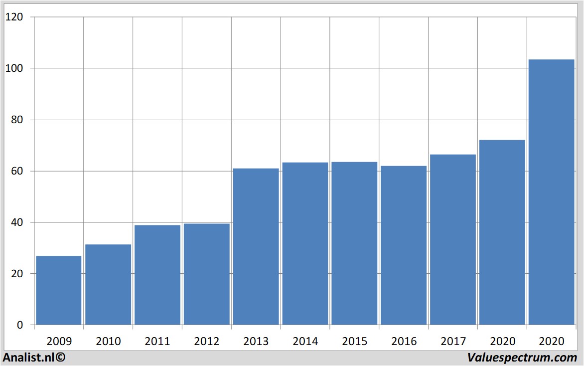 Anleger, die bereits im Jahr 2007 in Aktien des Unternehmens investierten, haben einen massiven Gewinn von 310 Prozent. Seit 2012 hat die Aktie einen Gewinn von 61 Prozent. In den vergangenen 90 Tagen hat die Aktie einen Gewinn von 26 Prozent.Für dieses Jahr beträgt der Konsensus des Umsatzes 5,22 Mrd. Euro. Das ist etwas mehr als der Ertrag im Jahr 2019 in Höhe von 4,91 Mrd. Euro.