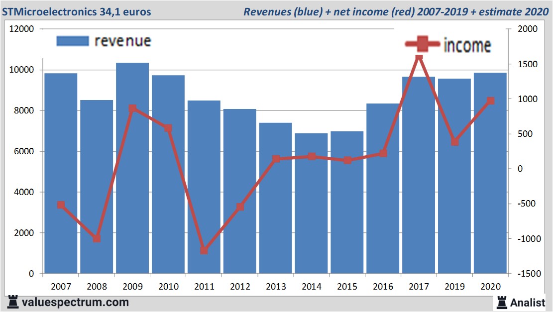 StmicroelectronicsDie Analysten erwarten für 2020 einen Jahresüberschuss von 974 Mio. Euro. Für dieses Jahr erwartet die Mehrheit der Analysten einen Gewinn pro Aktie von 1,06 Euro. Basierend darauf, beträgt das das Kurs-Gewinn-Verhältnis 32,17.