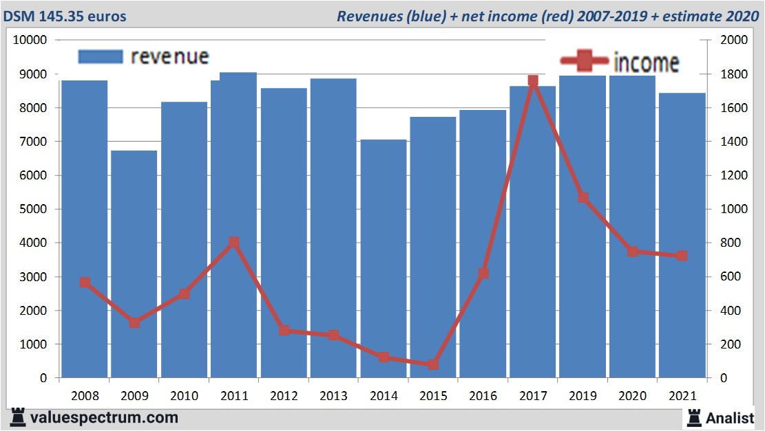 Morgen wird die niederländische DSM die Resultate des letzten Quartals bekanntgeben. Für dieses Jahr beträgt der Konsensus des Umsatzes 8.44 Mrd. Euro. Das ist etwas weniger als der Ertrag im Jahr 2019 in Höhe von 9.01 Mrd. Euro.
