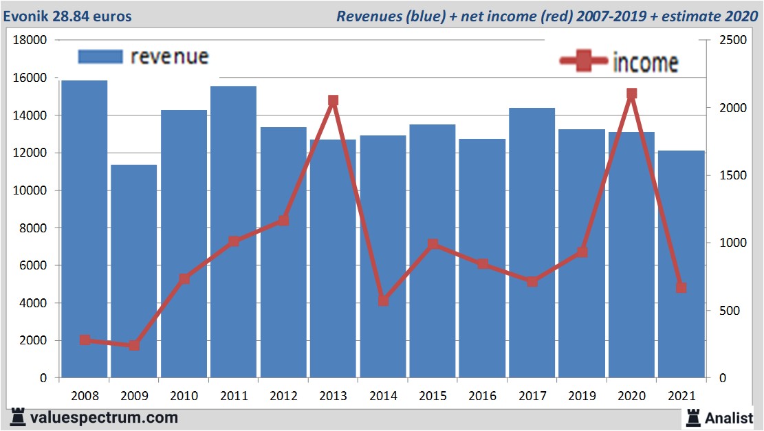 Morgen wird die deutsche Firma Evonik die Ergebnisse des letzten Quartals veröffentlichen. Für dieses Jahr wird von der Mehrheit der Analysten ein Gesamtumsatz von 12.1 Mrd. Euro erwartet. Das ist etwas weniger als der Ertrag im Jahr 2020 in Höhe von 13.11 Mrd. Euro.