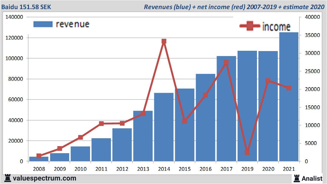 In den letzten 12 Monaten war die Baidu Aktie recht unbeständig. Seit letzten October ist der Aktienkurs um sogar 22 Prozent gestiegen. Dieses Jahr schwankte der Aktienkurs zwischen 124 und 355 SEK.