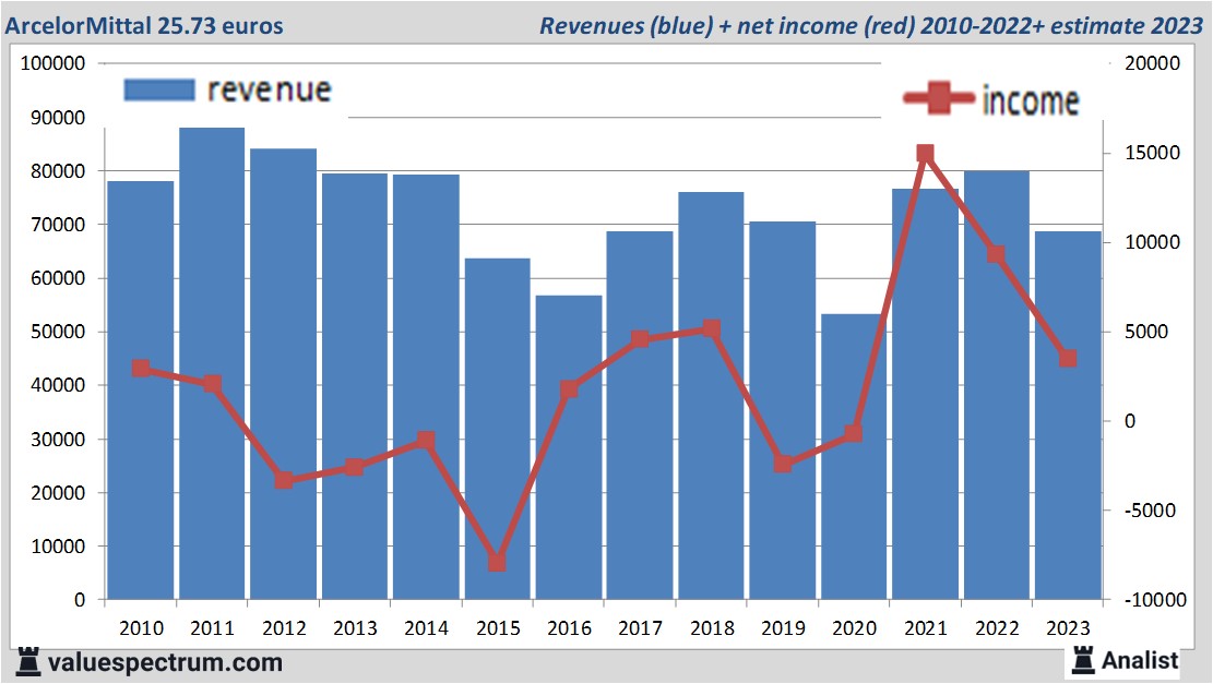 ArcelorMittal 's Marktkapitalisierung beträgt 23.44 Mrd. Euro.